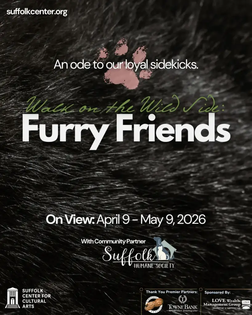 Donna Maria serves as President of the Board of Directors for the Suffolk Humane Society and teaches in the Department of Communication at Regent University. She has spent more than 20 years advancing mission-driven organizations in the nonprofit sector. Donna Maria served as Director of Marketing and Public Relations for the AQS National Quilt Museum, working with international fiber artists and national exhibitions. She also managed the donor quilt program for LifeNet Health honoring organ and tissue donors. She is delighted to bring her passion for arts, philanthropy, and community engagement to the Suffolk Center for Cultural Arts for the Walk on the Wild Side: Furry Friends exhibition.